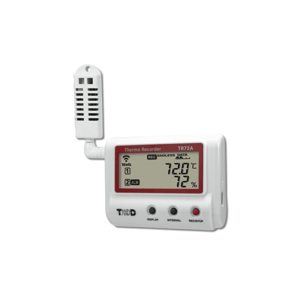 Mycket noggrann logger och display för sorptionsavfuktare för att avläsa fukt / RF och temperatur i krypgrund eller på vind. Kopplas upp till mobil eller dator med WiFi eller Blåtand.